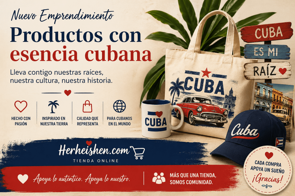 He creado herheishen.com, una plataforma pensada para ofrecer productos con esencia cubana. Cada detalle, cada diseño y cada producto busca transmitir ese sentimiento que solo quienes llevamos Cuba en el corazón podemos entender.